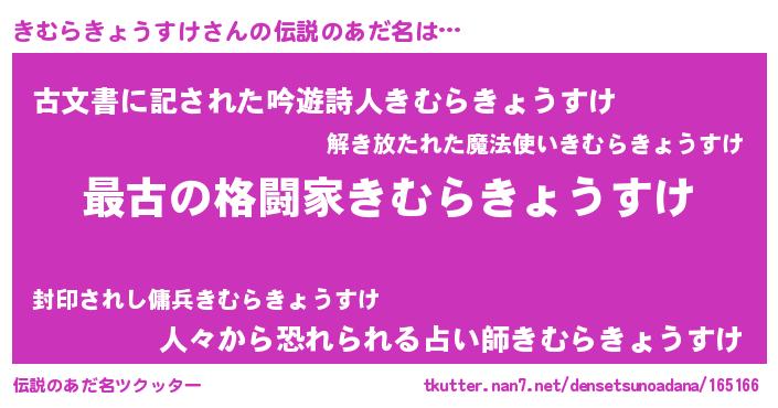意味不明あだ名 | 『住所不定無職きむらきょうすけ(2歳)』 |