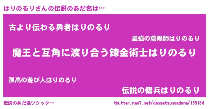 | 女子向けラノベタイトル風あだ名 | 『闇のはりのるり』 |