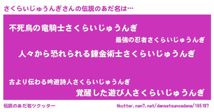 | ヒーロー風カッコイイあだ名 | 『正義の使者さくらいじゅうんぎ』 |