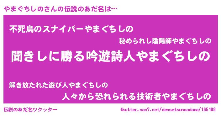 | 意味不明あだ名 | 『自称やまぐちしの』 |