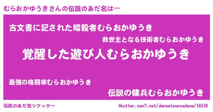 | 女子向けラノベタイトル風あだ名 | 『むらおかゆうき様がみてる』 |