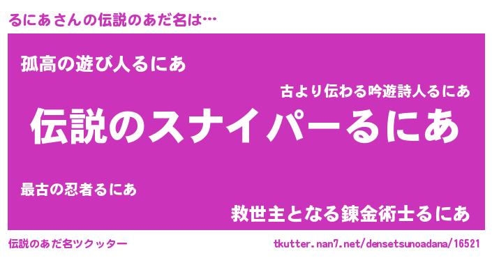 | 胡散臭い通販商品みたいなあだ名 | 『必ず成功する霊験あらたかなお札…その名も「るにあ」』 |