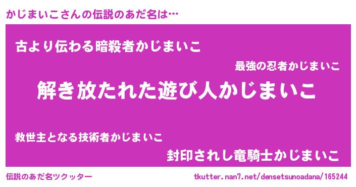 | 男性向けラノベタイトル風あだ名 | 『かじまいこの嫁は女の子じゃないと思った?』 |