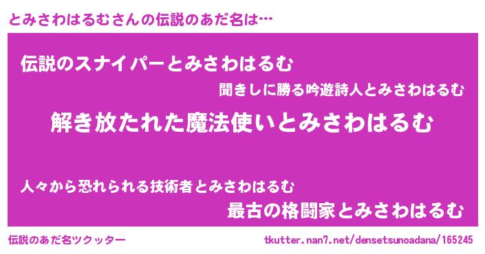 | 肩書あだ名 | 『とみさわはるむ閣下』 |