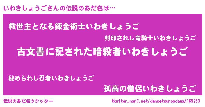 | 意味不明あだ名 | 『永久保存いわきしょうご』 |