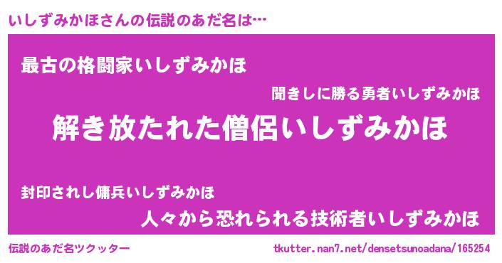 | ポケモン風あだ名 | 『ヒイシズミカホ』『イシズダネ』 |
