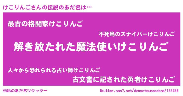 | 女子向けラノベタイトル風あだ名 | 『けこりんごの卵を拾いまして』 |