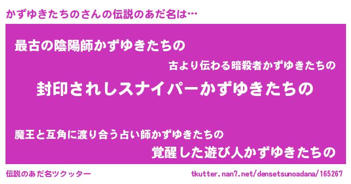 | 胡散臭い通販商品みたいなあだ名 | 『億万長者になれる霊験あらたかなお札…その名も「かずゆきたちの」』 |
