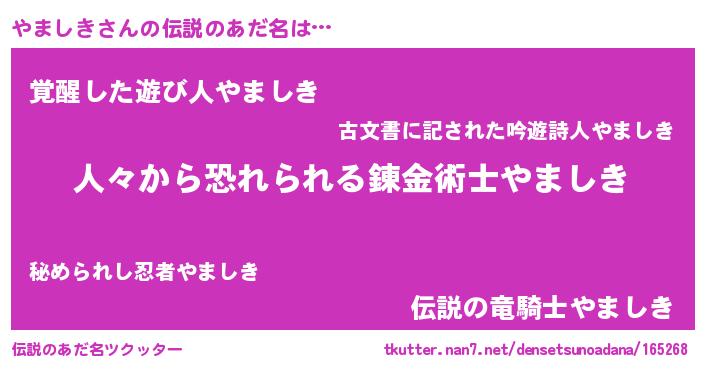 | ポケモン風あだ名 | 『ヤックウザ』『ヒヤマシキ』 |