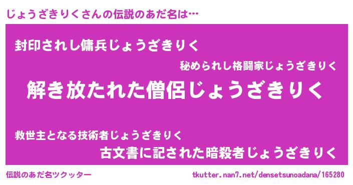 | 女子向けラノベタイトル風あだ名 | 『じょうざきりくの卵を拾いまして』 |