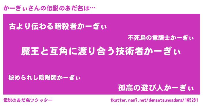 | ヒーロー風カッコイイあだ名 | 『友情の使者かーぎぃ』『仮面カーダー』 |