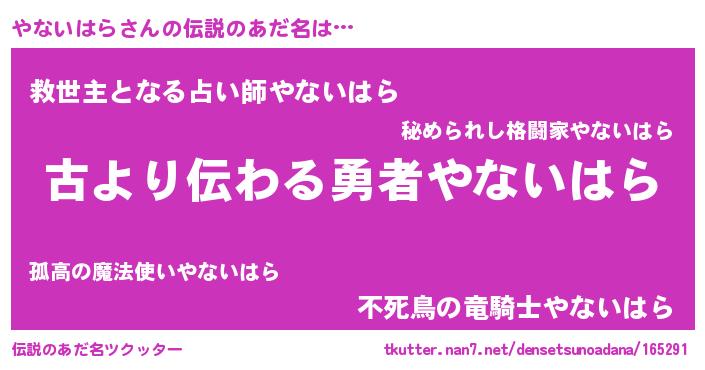 | 意味不明あだ名 | 『永久保存やないはら』 |