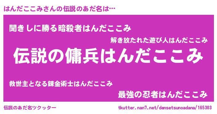 | 意味不明あだ名 | 『住所不定無職はんだここみ(65歳)』 |