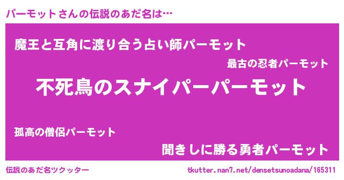| ヒーロー風カッコイイあだ名 | 『スーパーパーモット』『ネオパーモット』 |
