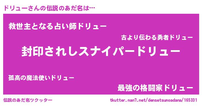 | ヒーロー風カッコイイあだ名 | 『スーパードリュー』『究極戦士ドリュー』 |