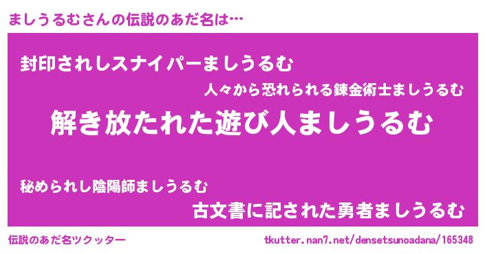 | 意味不明あだ名 | 『住所不定無職ましうるむ(77歳)』 |