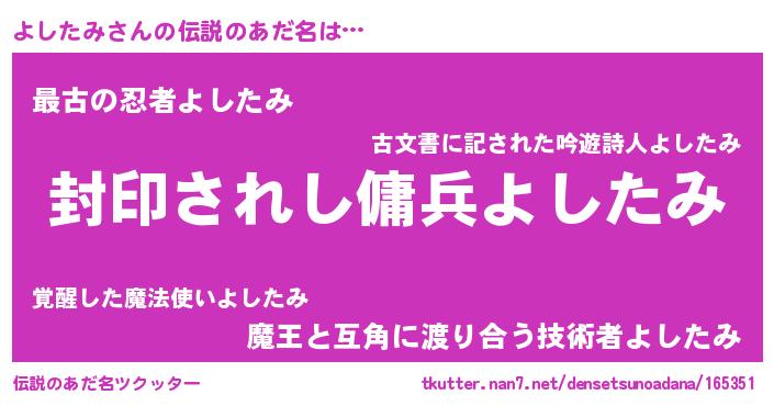| ヒーロー風カッコイイあだ名 | 『スーパーヨシタミ』『仮面ヨシダー』 |