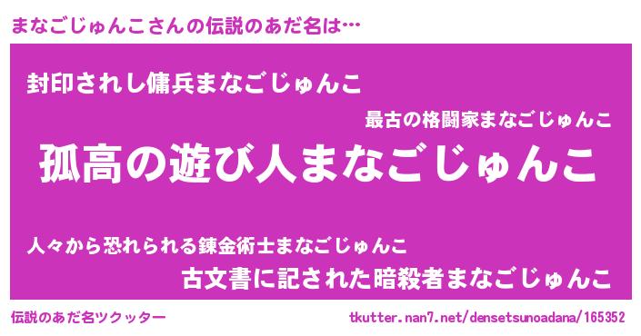 | ヒーロー風カッコイイあだ名 | 『暗黒騎士マナ』『仮面マナダー』 |
