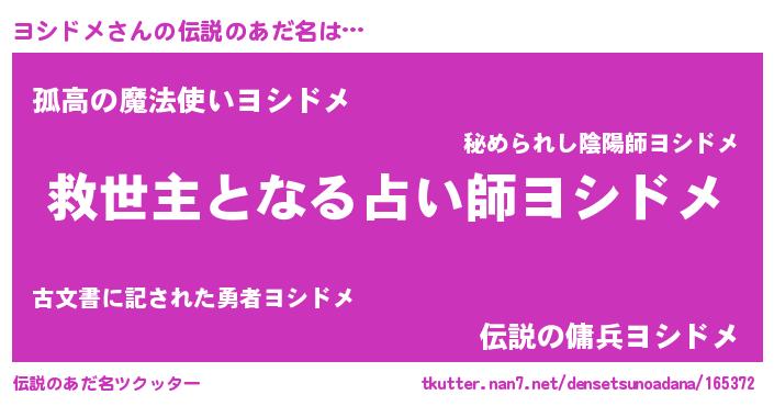 | ヒーロー風カッコイイあだ名 | 『天空の使者ヨシドメ』『暗黒騎士ヨシ』 |