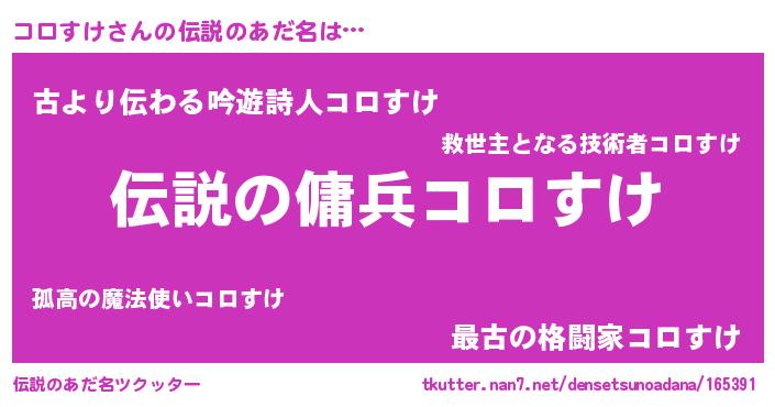 | 男性向けラノベタイトル風あだ名 | 『コロスケスレイヤー』 |