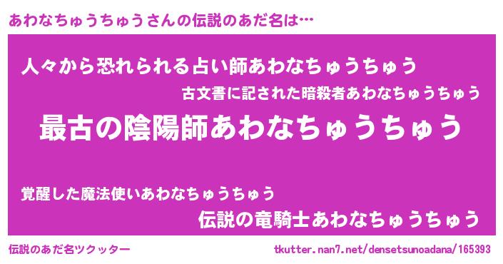 | ヒーロー風カッコイイあだ名 | 『ウルトラあわなちゅうちゅうマン』 |