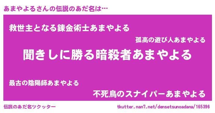 | 男性向けラノベタイトル風あだ名 | 『アマヤヨルスレイヤー』 |