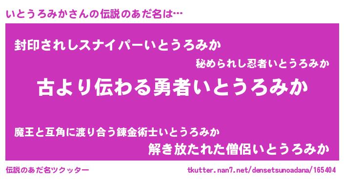 | ヒーロー風カッコイイあだ名 | 『ネオイトウロミカ』『魔戒騎士イト』 |