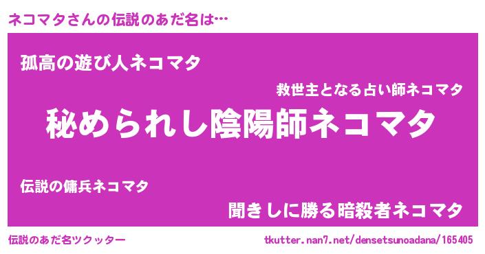 | ポケモン風あだ名 | 『ネコマダネ』『ヒネコマタ』 |