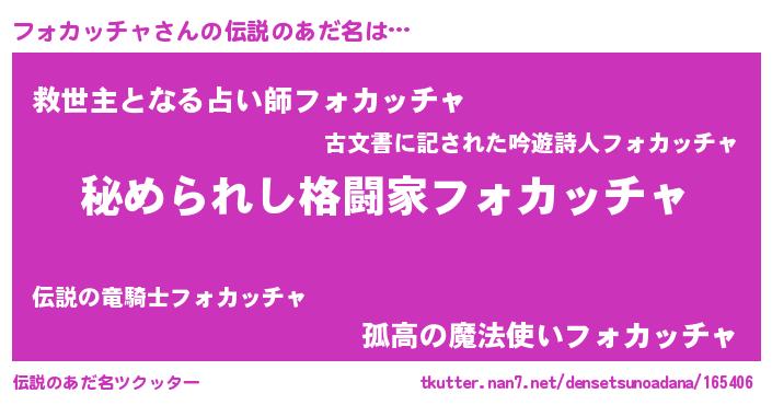 | ポケモン風あだ名 | 『フォゴンZ』『フォカダネ』 |