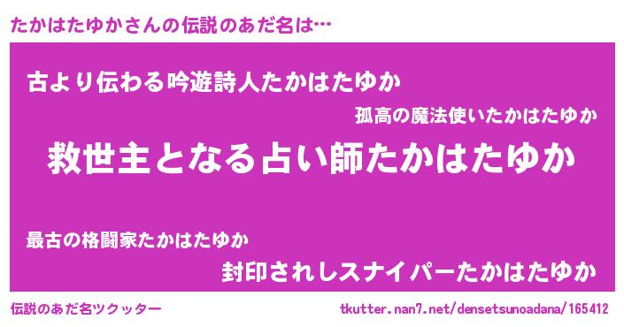 | ヒーロー風カッコイイあだ名 | 『慈愛の使者たかはたゆか』 |