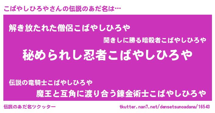 | 意味不明あだ名 | 『自称こばやしひろや』 |