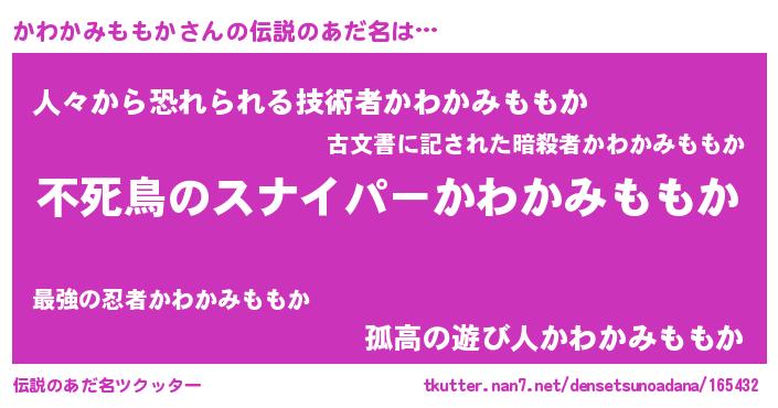 | ヒーロー風カッコイイあだ名 | 『サイバー戦士カワカミモモカ』 |