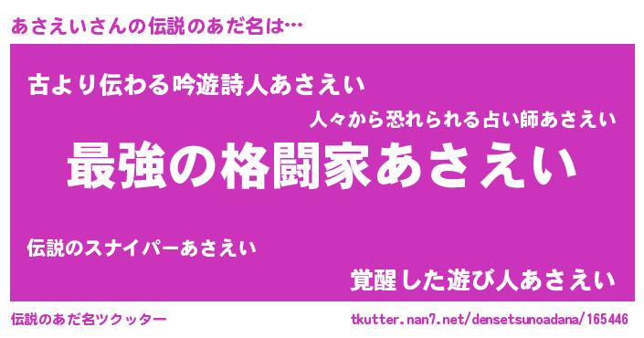 | 意味不明あだ名 | 『住所不定無職あさえい(8歳)』 |
