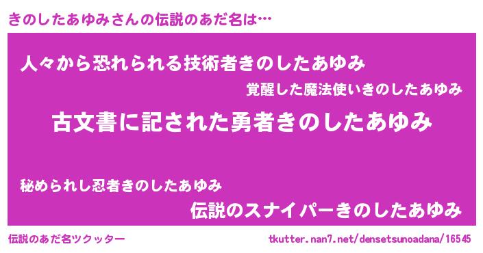 | 意味不明あだ名 | 『永久保存きのしたあゆみ』 |