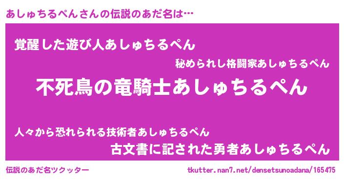 | 意味不明あだ名 | 『自称あしゅちるぺん』 |