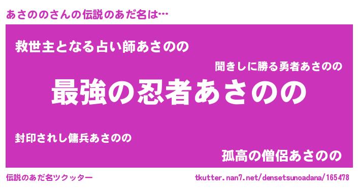 | 意味不明あだ名 | 『住所不定無職あさのの(41歳)』 |