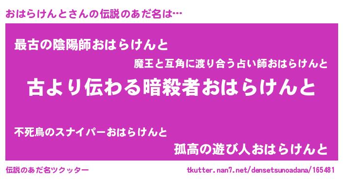 | 意味不明あだ名 | 『永久保存おはらけんと』 |