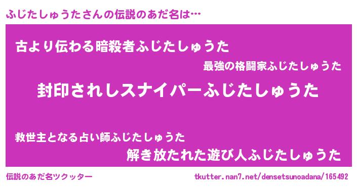 | 意味不明あだ名 | 『自称ふじたしゅうた』 |