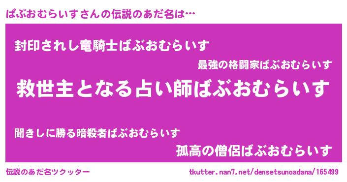 | ヒーロー風カッコイイあだ名 | 『天空の使者ばぶおむらいす』 |