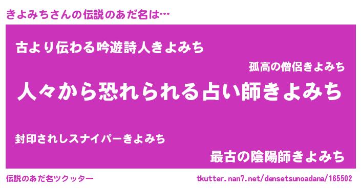 | ヘコむあだ名 | 『きよみち(笑)』『なまこ酢』 |