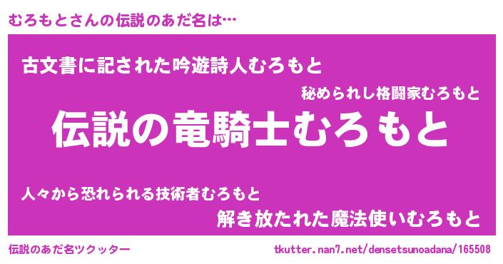| 男性向けラノベタイトル風あだ名 | 『ムロモトスレイヤー』『むろもとの憂鬱』 |