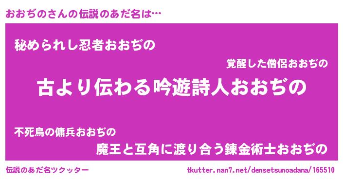 | ヒーロー風カッコイイあだ名 | 『仮面オオダー』『ネオオオヂノ』 |