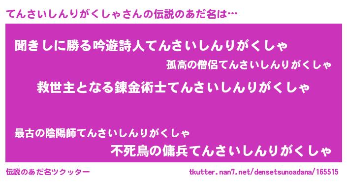 | ヒーロー風カッコイイあだ名 | 『慈愛の使者てんさいしんりがくしゃ』 |