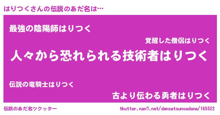 | ヒーロー風カッコイイあだ名 | 『友情の使者はりつく』『ネオハリツク』 |