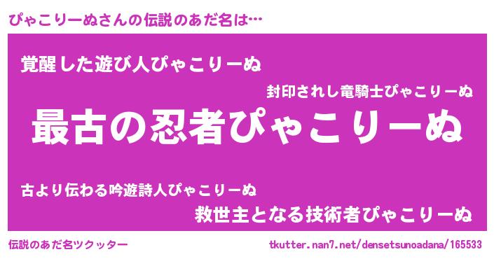| ファンタジー風あだ名 | 『エターナルピャコリーヌー』 |