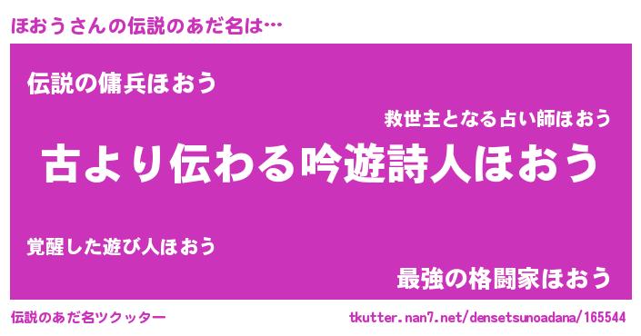 | 意味不明あだ名 | 『もやし科ほおう属』『自称ほおう』 |