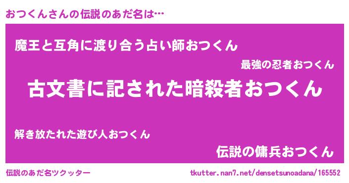 | ヒーロー風カッコイイあだ名 | 『究極戦士オツクン』『ネオオツクン』 |