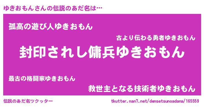 | 男性向けラノベタイトル風あだ名 | 『ゆきおもんに滅ぼされるだけの簡単なお仕事です』 |