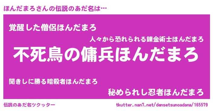 | 男性向けラノベタイトル風あだ名 | 『転生したらほんだまろだった件』 |