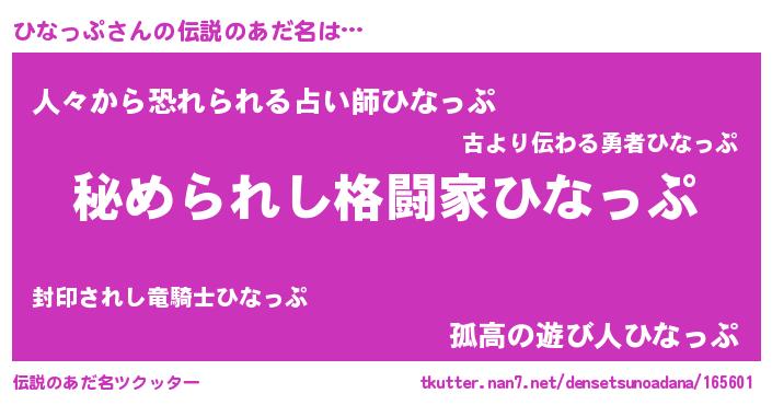 | ヒーロー風カッコイイあだ名 | 『ウルトラひなっぷマン』『魔戒騎士ヒナ』 |